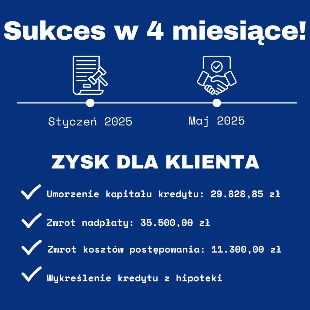 Prowadzimy w Twoim imieniu wszelkie czynności zmierzające do odzyskania przysługujących Ci należności, by w efekcie doprowadzić do kompleksowego zakończenia sprawy i wykreślenia kredytu z hipoteki.